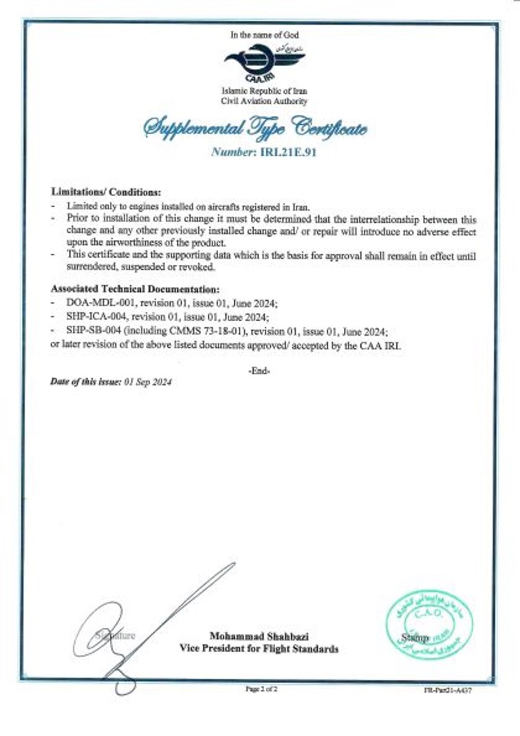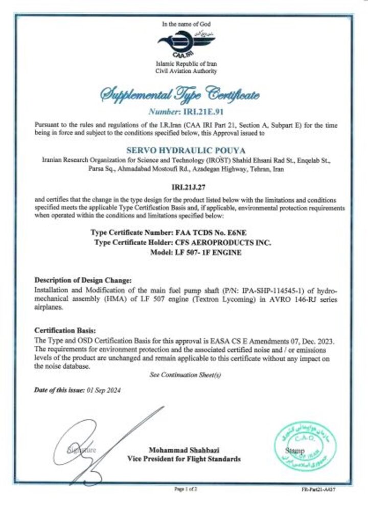 مجوز انجام اصلاحات و بهینهسازیهای فنی بر روی انواع هواگردها و سامانههای وابسته، با هدف افزایش کارایی و ایمنی.